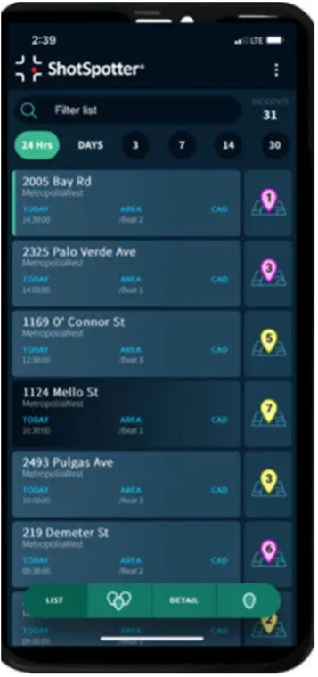 - Potential shooter context: In the critical moments following gunfire, knowledge is power. ShotSpotter delivers instantaneously, tagging incidents with vital intelligence and relaying it directly to dispatch centers and mobile apps. Multiple Shooters, High-Capacity Firearm, Fully-Automatic Gunfire, and Drive-By Shooting (with mph and direction of travel) are some key real-time intel tags. In subsequent forensic analyses, ShotSpotter’s forensic experts rigorously verify and expand upon this data, delivering courtroom-ready evidence.
